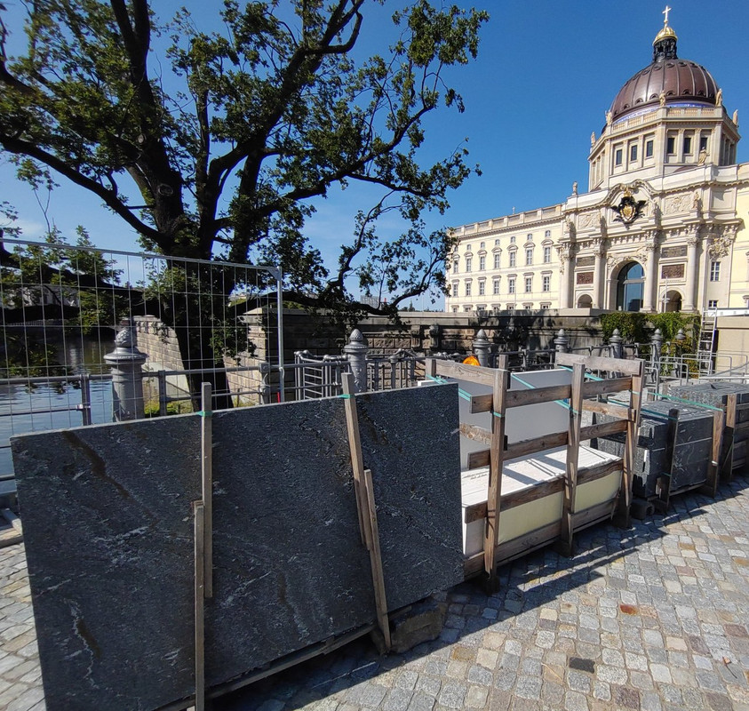 Wippensockel bzw. Freiheit und Einheitsdenkmal . Nach 10 Monate später.Noch fehlt ( leider) die Wippensockel. Fertigen bestellte grauen Fassaden stehen bereit....