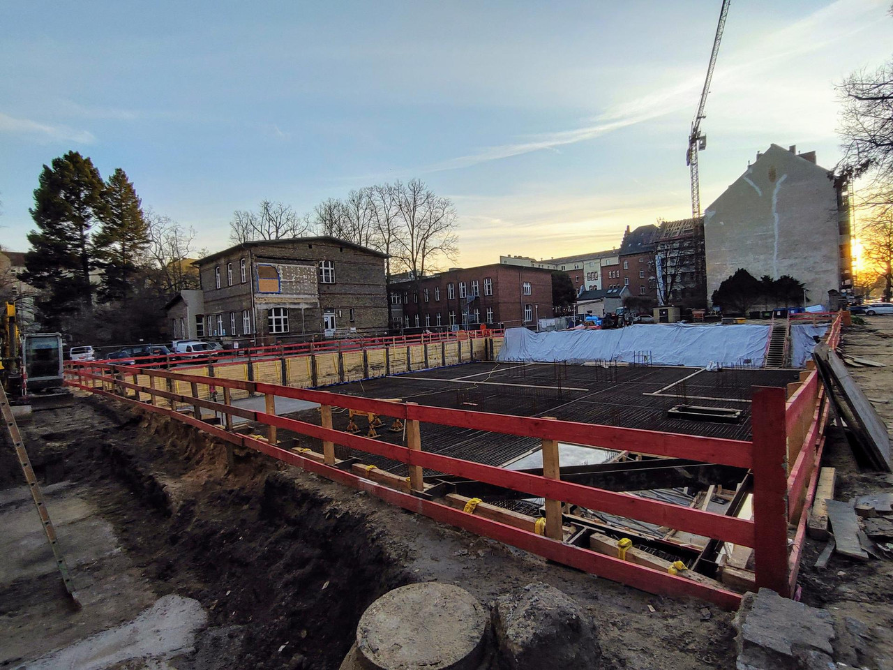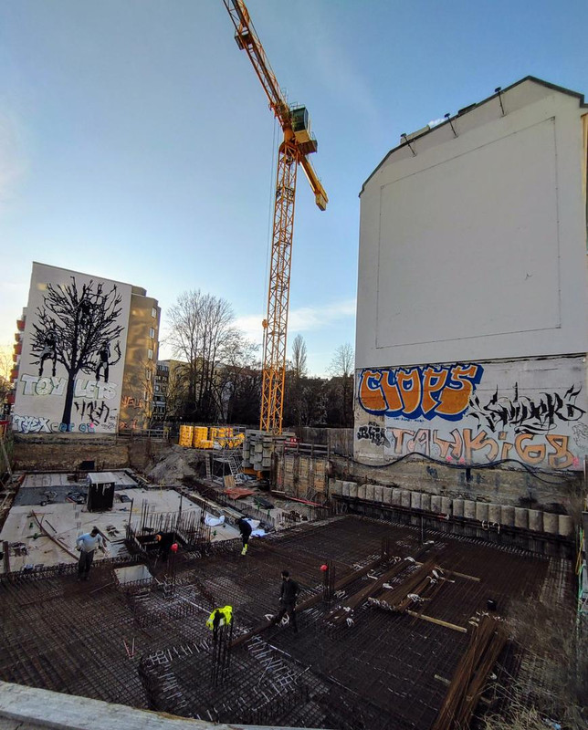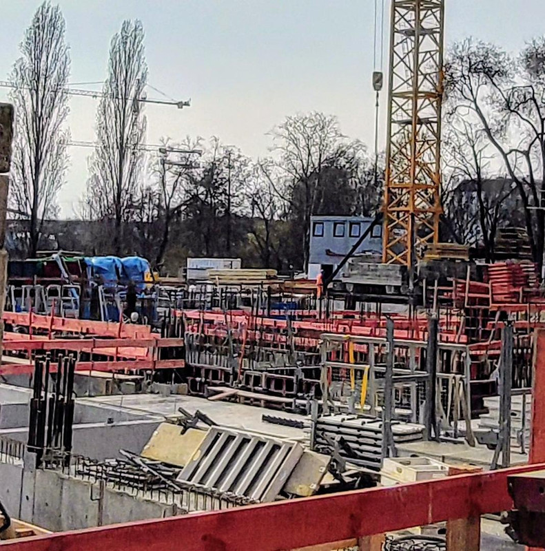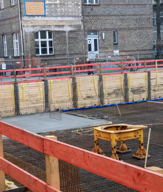 Hier ist das UG ,fast abgeschlossen. Nun hat man kaum eine Chance ein Rundgang der Baustelle zu betrachten. Da die Hälfte eingezäunt Ist.
