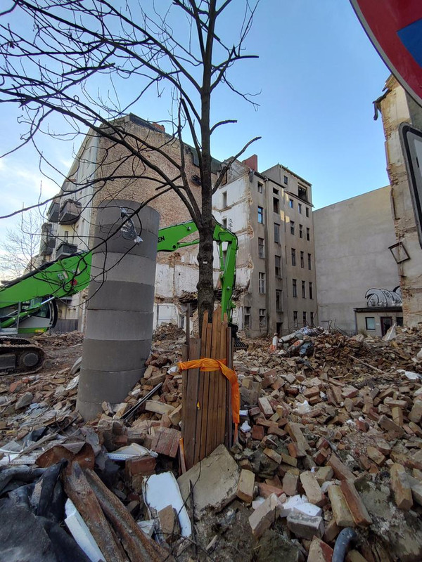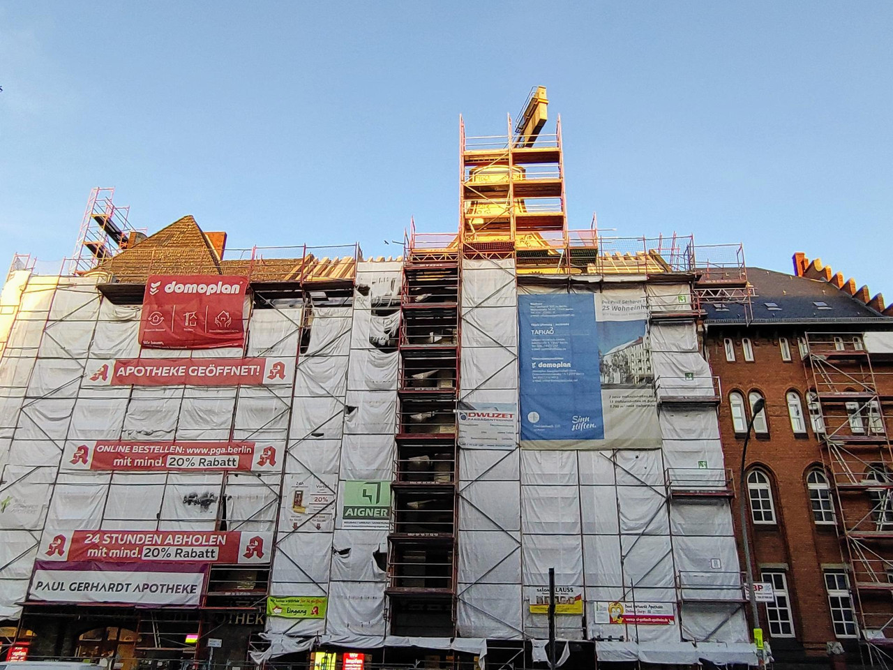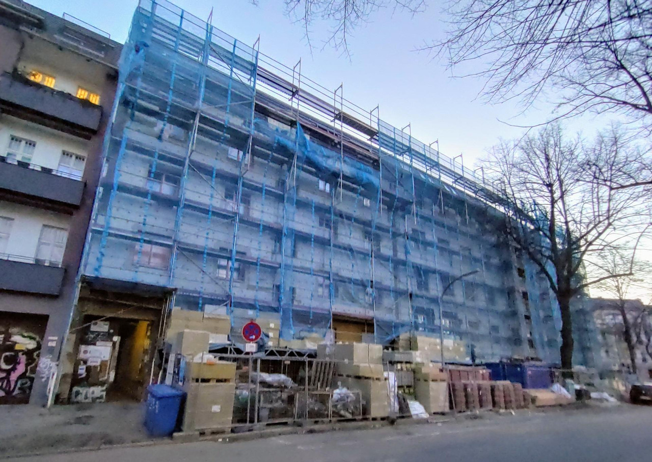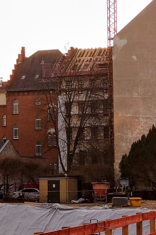 Beim Gebäude wird weiter saniert und das Dach neu gebaut Teils auch Saniert. Parallel an der Ecke : Barfußstraße Nr.6 kommt das zukünftige Neubau Sozialwohnungen.
