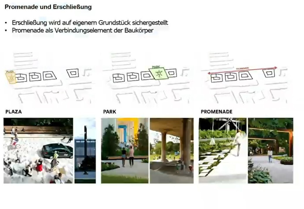 Die Parks werden über eine Promenade und begrünte Dachlandschaften verbunden,