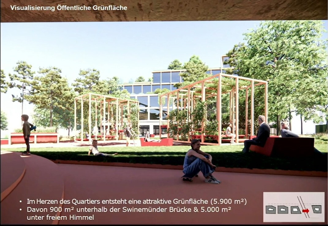 außerdem entsteht ein Pocket-Park an der Swinemünder Brücke:
