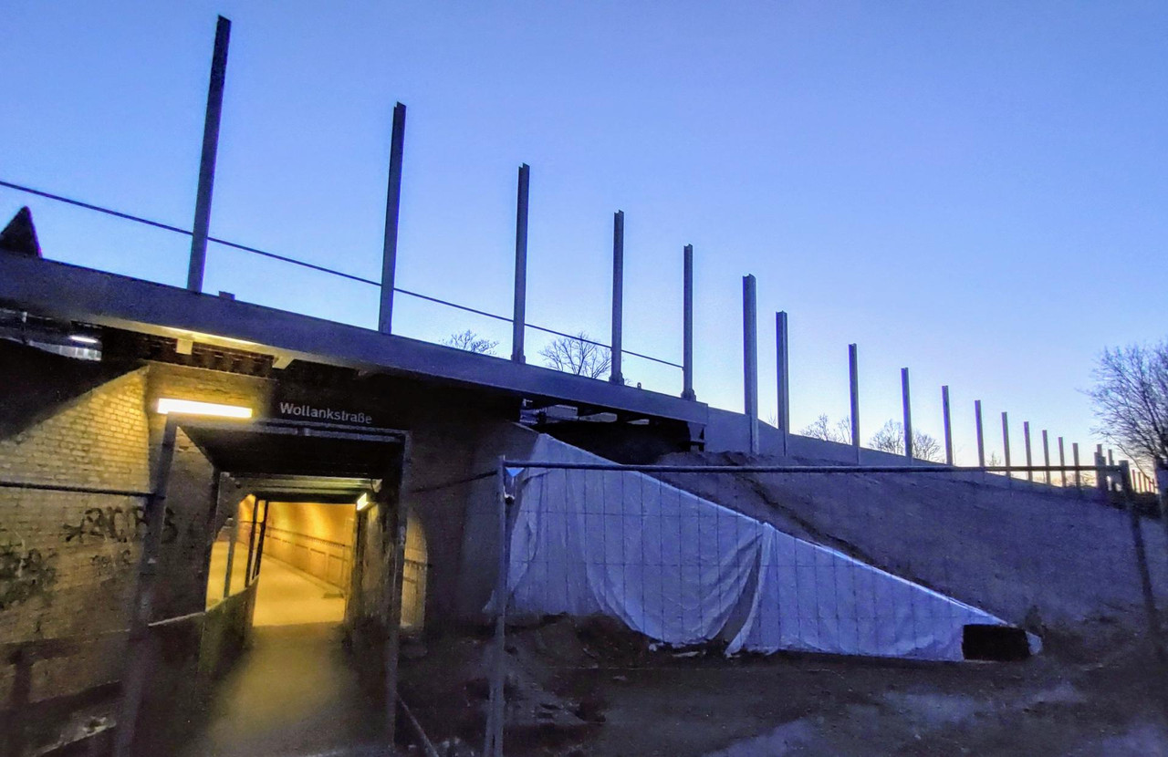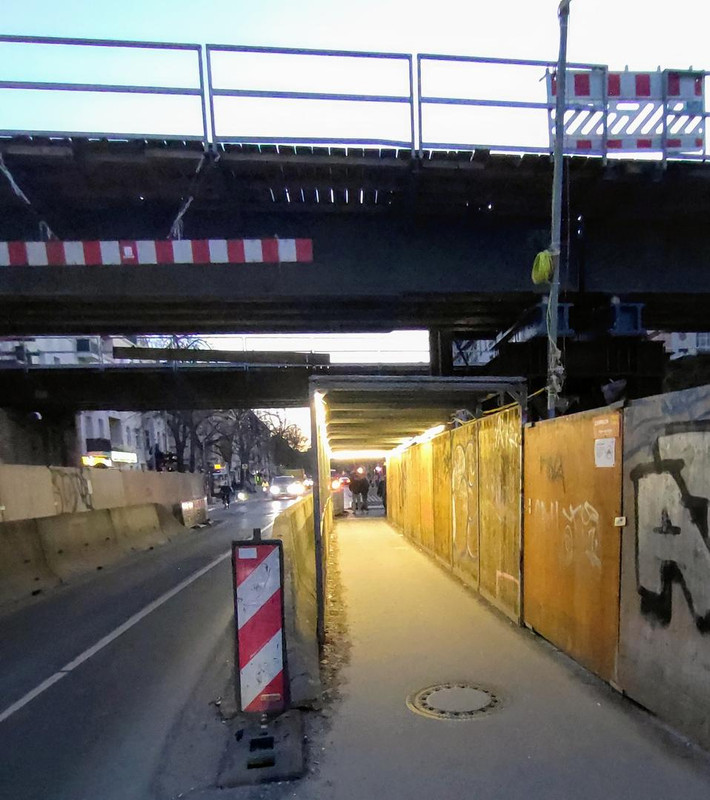 Noch ist Geduld gefordert : Am Wochenende 14.- 15. März , wird die Behelfsbrücke für den motorisierten Verkehr gesperrt. Busse der Berliner Verkehrsbetriebe, Rettungsfahrzeuge und der Fuß & Radverkehr kommen weiterhin durch.
