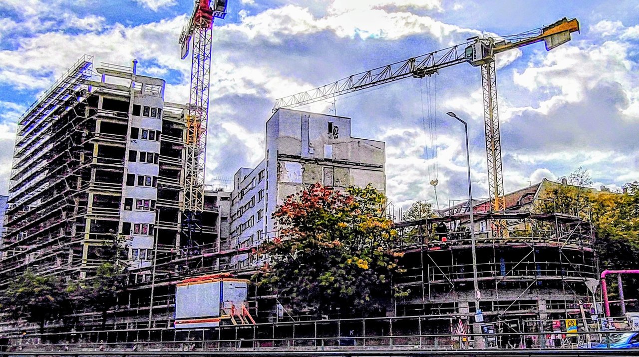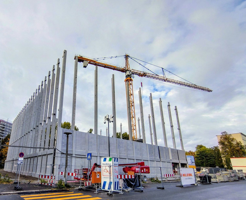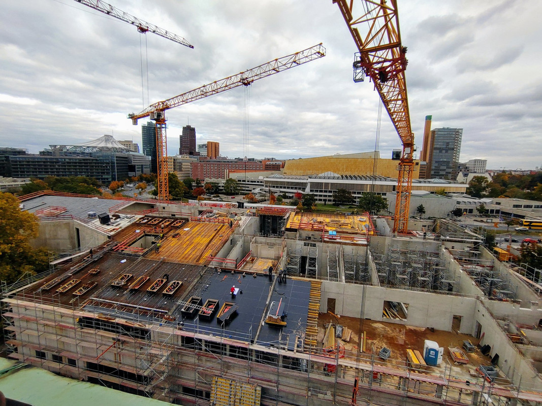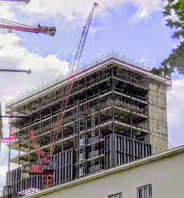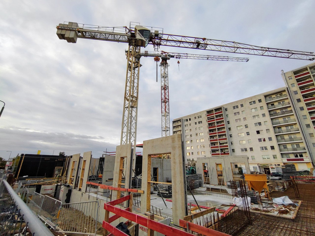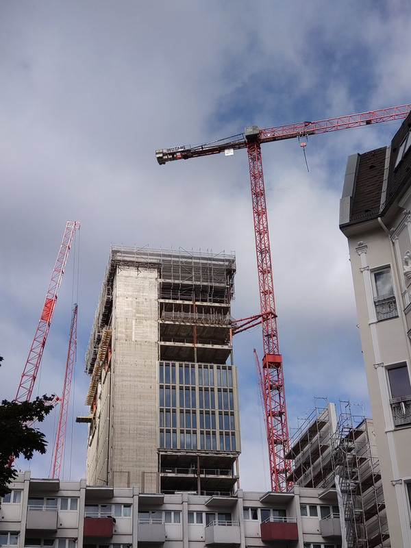 ^ Noch in diesem Monat, ist der Rohbau abgeschlossen. Die 2 - Kranen, können sich bei diesen Wetter als " Wolkenkratzer " Nennen.