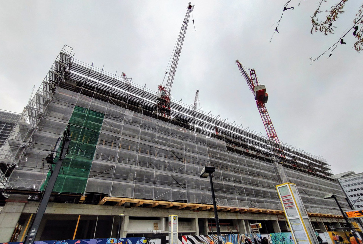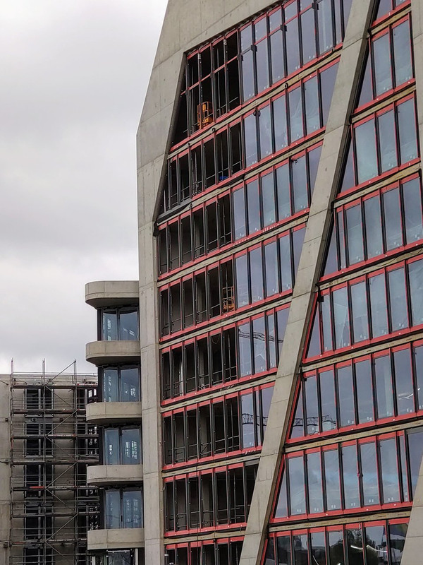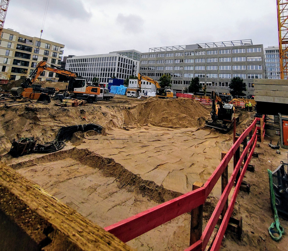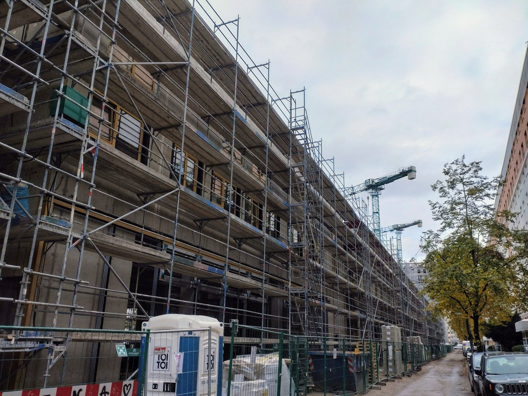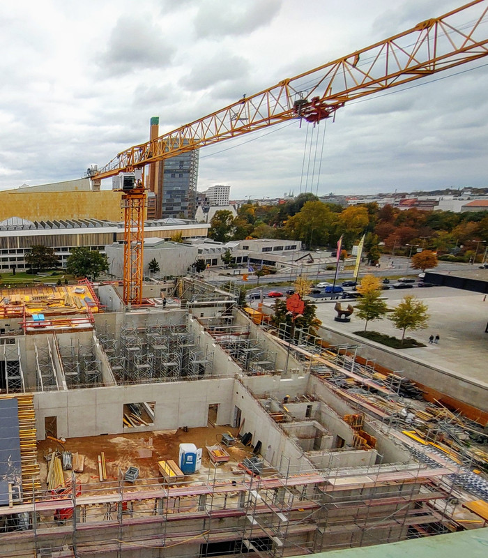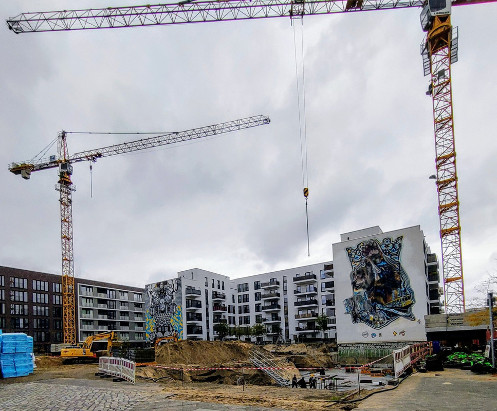 ^ Noch in diesem Monat, ist der Rohbau abgeschlossen. Die 2 - Kranen, können sich bei diesen Wetter als " Wolkenkratzer " Nennen.