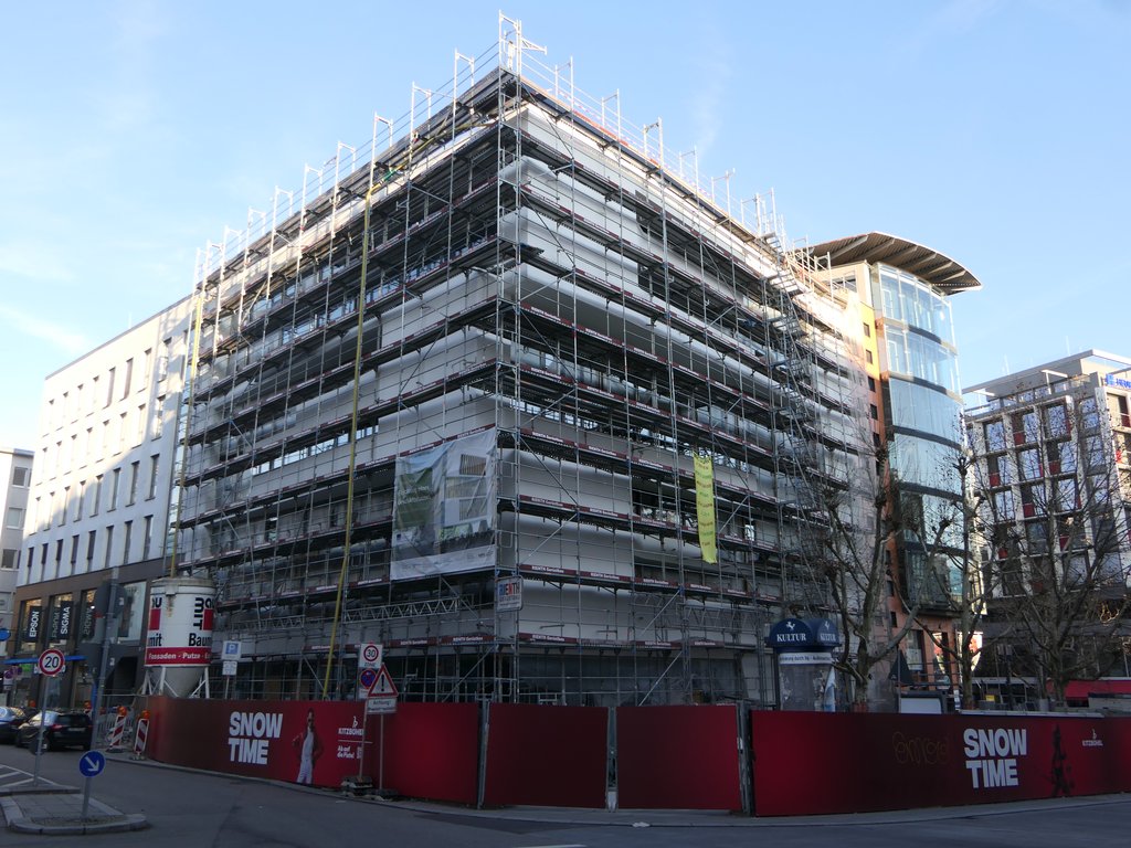 Update 27.12.24. Was habt ihr erwartet? Doch nicht etwa Baumasse wie beim Hegelhaus gegenüber?! Was hier entsteht ist in meinen Augen ja wohl das Mindeste! Genau diese Dichte (und Enge hinten) muss hier sein! Ist ja schon der letzte Rest lebhafter Bebauung mit Schwung in diesem Bereich... Sowohl entlang der Eberhardstrasse als auch hinten raus zum Hans-im-Glück-Brunnen gibt es hier das Mindestmaß an Baumasse und nicht etwa zu viel. Entscheidend wird eh sein was eines Tages mit dem Karstadt-Klotz gegenüber (samt Parkhaus nebenan) geschieht. Mit dieser Neugestaltung steht und fällt auch "Vier Giebel". Wenn man es richtig macht könnte da eine nie da gewesene Oase entstehen zwischen Hans im Glück und Hirschbuckel.