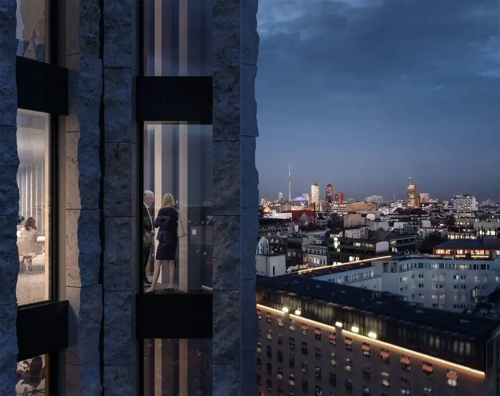 Die dritte Fensterreihe hängt z.T. und das von Sidious erwähnte horizontale Äquivalent zu den verstärkten Lisenen wird erkennbar.